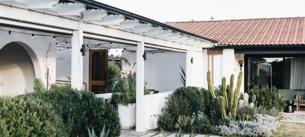 Tucked behind a turnoff from the Princes Highway, behind a few acreage blocks in picturesque Mossy Point and down the end of a long gated driveway, The Oaks Ranch was extensively renovated in 2022. This Spanish Mission-style boutique hotel and signature magnesium pool are surrounded by meticulously curated gardens with the reno respecting the bones of the establishment, which haven’t changed since it was first built as a jillaroo camp (yes, really) in the 1970s.